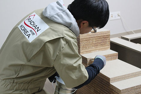 깨끗해진 실내를 라디안프로용액을 사용하여 가구, 벽지, 시트지, 몰딩 부분 및 강화마루까지 코팅합니다.